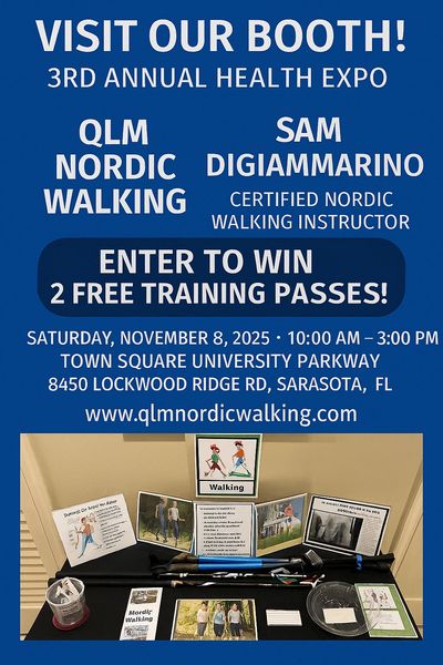 If you’ve ever wished your daily walk could do more for your body—more cardio, more strength, more energy—then Nordic Walking might be your new favorite discovery. And there’s no better place to learn about it than the 3rd Annual Health Expo on Saturday, November 8, 2025, from 10:00 AM to 3:00 PM at Town Square University Parkway in Sarasota, FL.